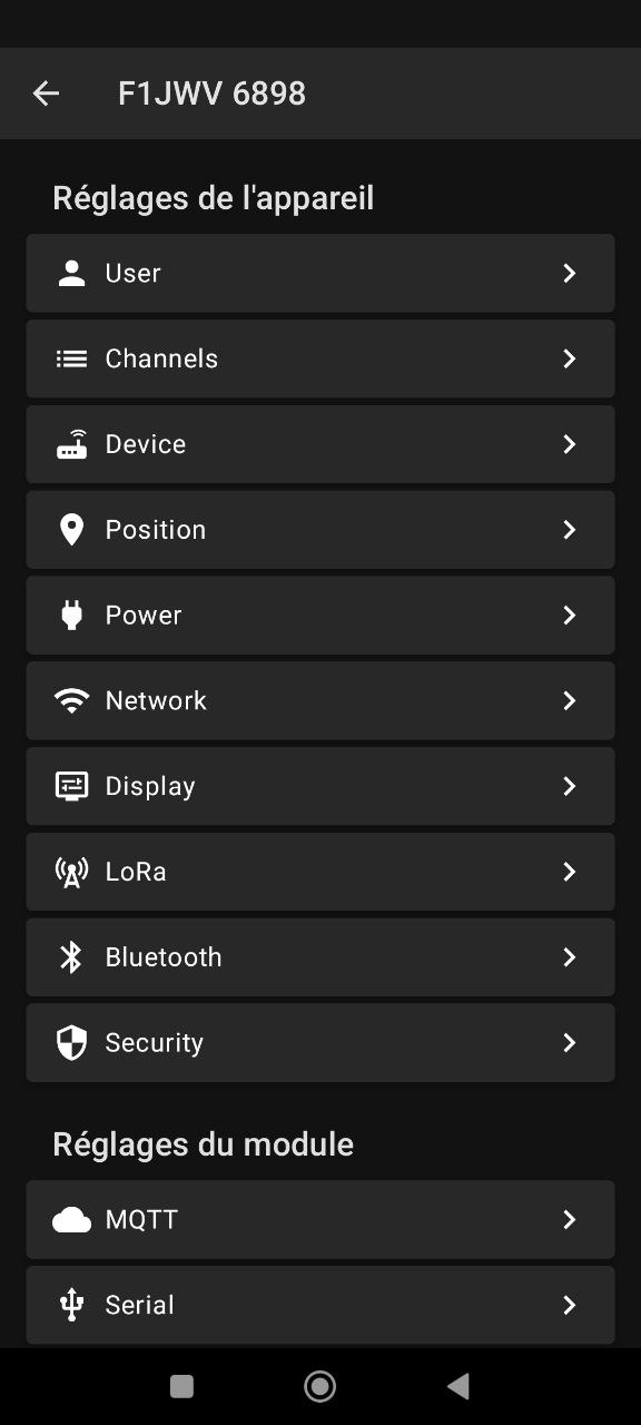 Quoi qu'il arrive la préconfiguration sera faite en Bluetooth qu'il faudra activer sur le téléphone! Pour l'appairage Bluetooth, le module proposera un code à 6 chiffres sur son écran OLED, code à taper valider sur le téléphone portable, de ce fait l'appli Meshtastic pourra se connecter au module V3!. Des Captures vous sont proposées à titre d'exemple pour votre Appli! mettez votre indicatif perso!!!.
